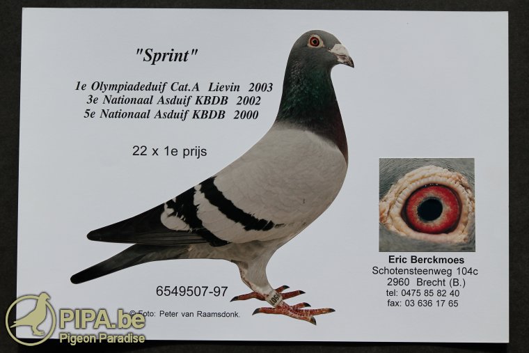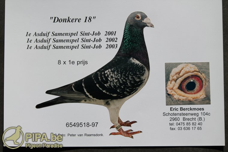 Porumbeii sprinteri ai lui Albert Marcelis obisnuiau sa concureze intr- o cursa de sprint in fiecare weekend. Eric berckmoes mizeaza acum pe aceeasi campioni pentru distanta medie extrema. Eric a incheiat un sezon minunat cu un titlu binemeritat de locul 3 campion national kbdb la porumbeii batrini pe distanta medie extrema in 2013!