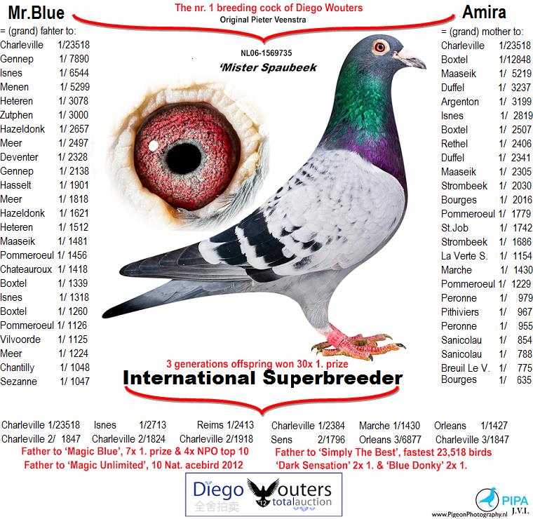 Asta este incredibil. Diego si-a folosit porumbeii la doar 7 curse in 2012. Cine stie de ce porumbeii lui ar fi fost in stare in urmatoarele sezoane? Din pacate, povestea de succes se opreste aici. Diego a decis sa se retraga datorita circumstantelor amintite anterior. “Ca si crescator mereu vreau sa ajung in top si nimic nu poate schimba asta”. In acest sezon a castigat al 10-lea National Ace Pigeon NPO Sprint cu un frate al lui Magic Blue, fost de asemenea pui al lui Mr. Spaubeek. Aceasta colectie este de fapt o oferta unica: mama acestor porumbei de top, Superkweekster Van Cock Groen, a murit din cauza unei inabilitati de a scoate ouale.